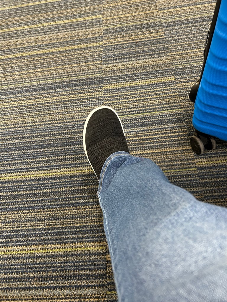 The second pair I got on Amazon for under 40 bucks. These are slip on boat like shoe style, with a little plaid design. Looks really cute with jeans. I can feel the arch support with these, the toe box is a little tight, but I’m sure after I break them in, they will be comfy. Like the fitflop, they did not rub against my ankles. I wore these thru three large airports, took over 10K steps and my feet were happy. I highly recommend both shoes to anyone who has planter fasciitis or other foot problems.